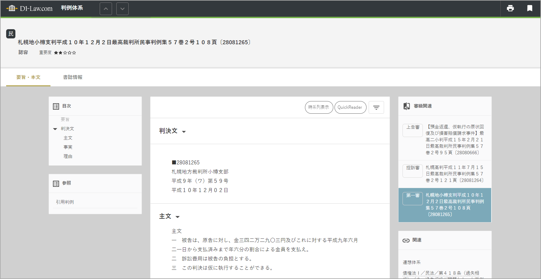 ●重要な判例の解説情報へのアクセスもスムーズに行えるなど、判例を起点に様々な情報に連携します。(一部、有料オプションを含む)