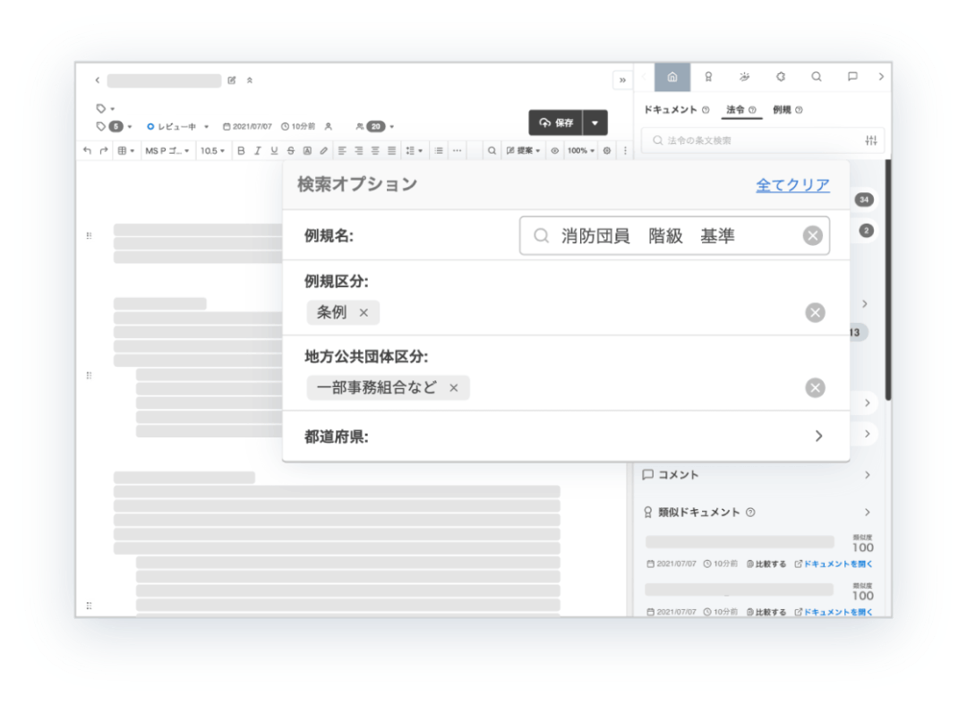 法令データベース 「D1-Law.com」 と連携、 条文検索が可能