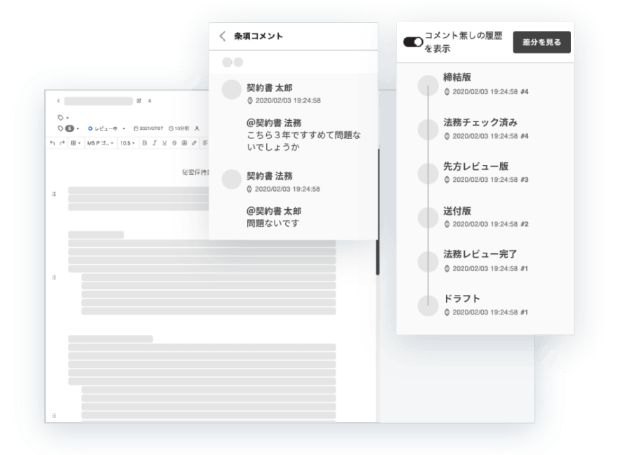 作成から審査まで1つのツール上で完結し、 検討経緯もナレッジ化