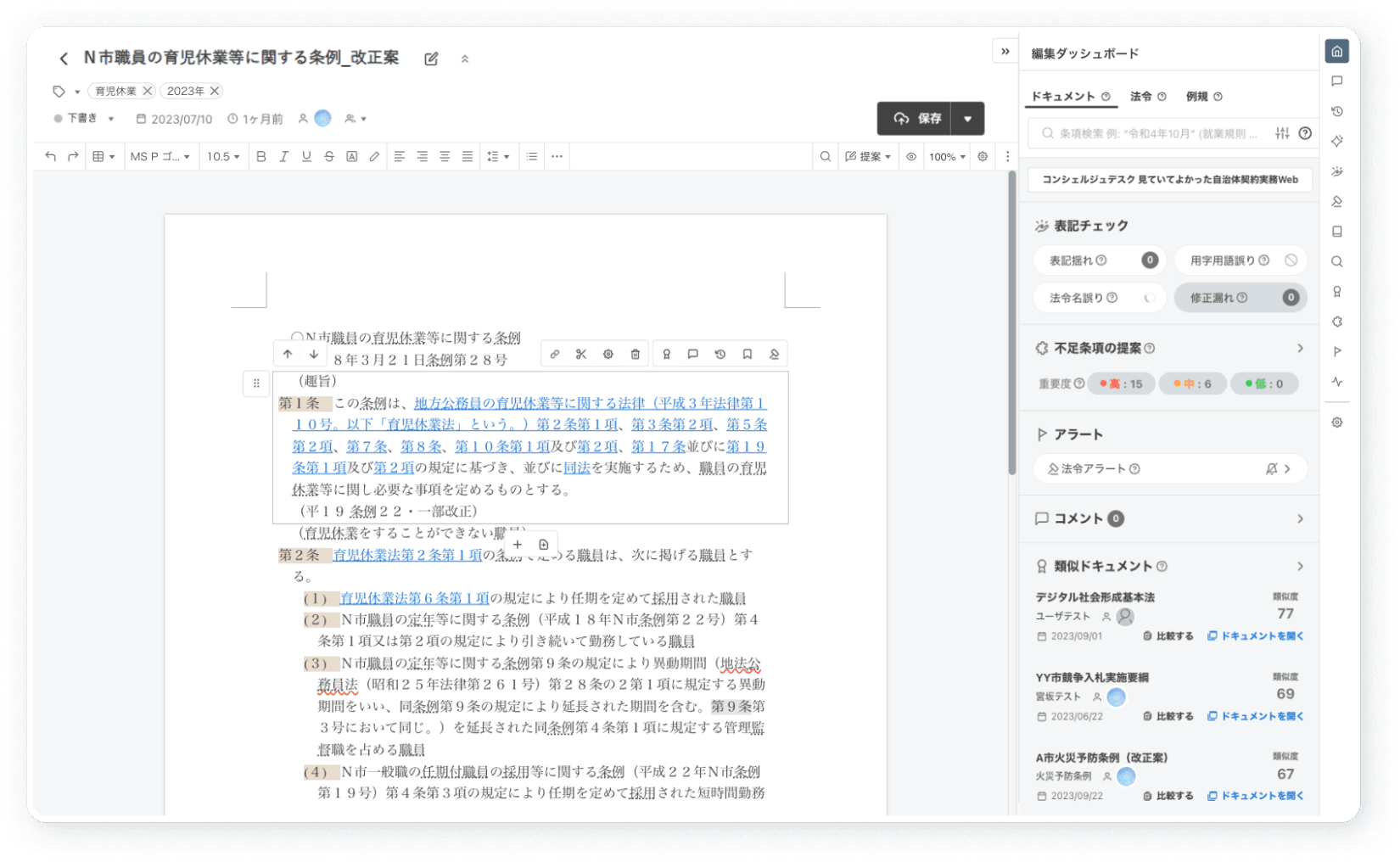 公用文ルール、表記揺れの検知などより正確な文書起案が可能になります。
