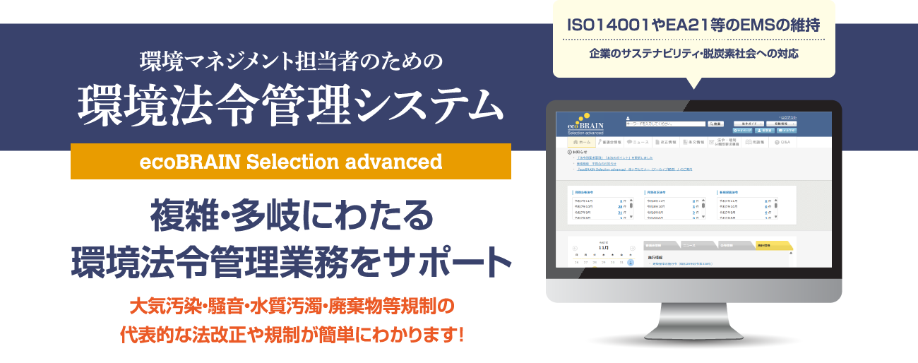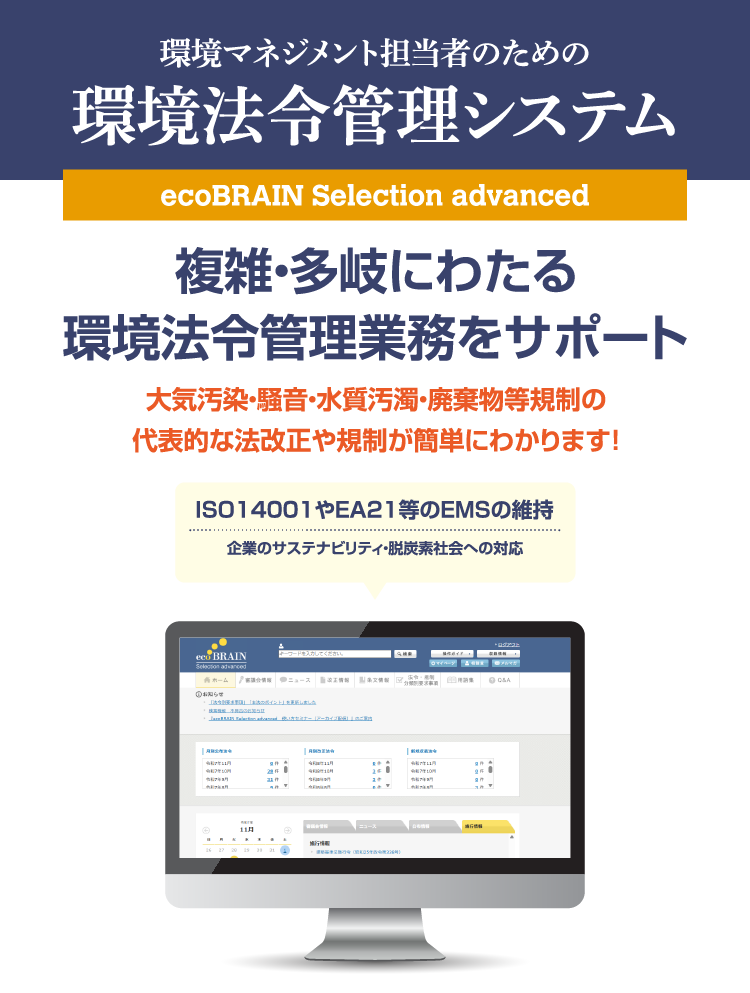 環境条例管理システム「エコブレイン環境条例NaviPremium」や、