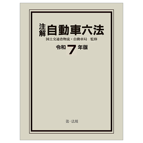 毎年発行の『注解 自動車六法』の令和7年版。原則として、令和7年7月1日までに制定・改正され、令和8年4月1日までに施行される法令等を収録。