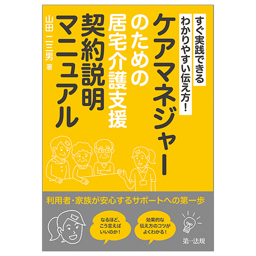 複雑な介護保険制度や契約に関する留意事項、サービス導入時のポイントなどについて、ケアマネジャーが利用者・家族にわかりやすく説明できるよう、具体的な説明方法と「伝え方ポイント」を示したマニュアル本